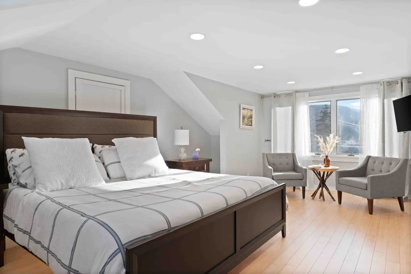 Contemporary house located in the heart of Catskills Park. 2 hours from G.W Bridge house has a sauna, hot tub, game room, outdoor fire pit and wine bar. 9 mins to Belleayre ski, 13 mins to Plattekill. Total of 3 fls, 3600 SF of living space, sleeps 15, perfect for a group of family or friends gathering together. Granite kitchen countertop w/ tons of cabinet space, eat in kitchen. 15 seats dinning table. 3 modern design bathrooms and 6 large cozy bedrooms. Outdoor lounge area, fire pit with a gorgeous mountain view.