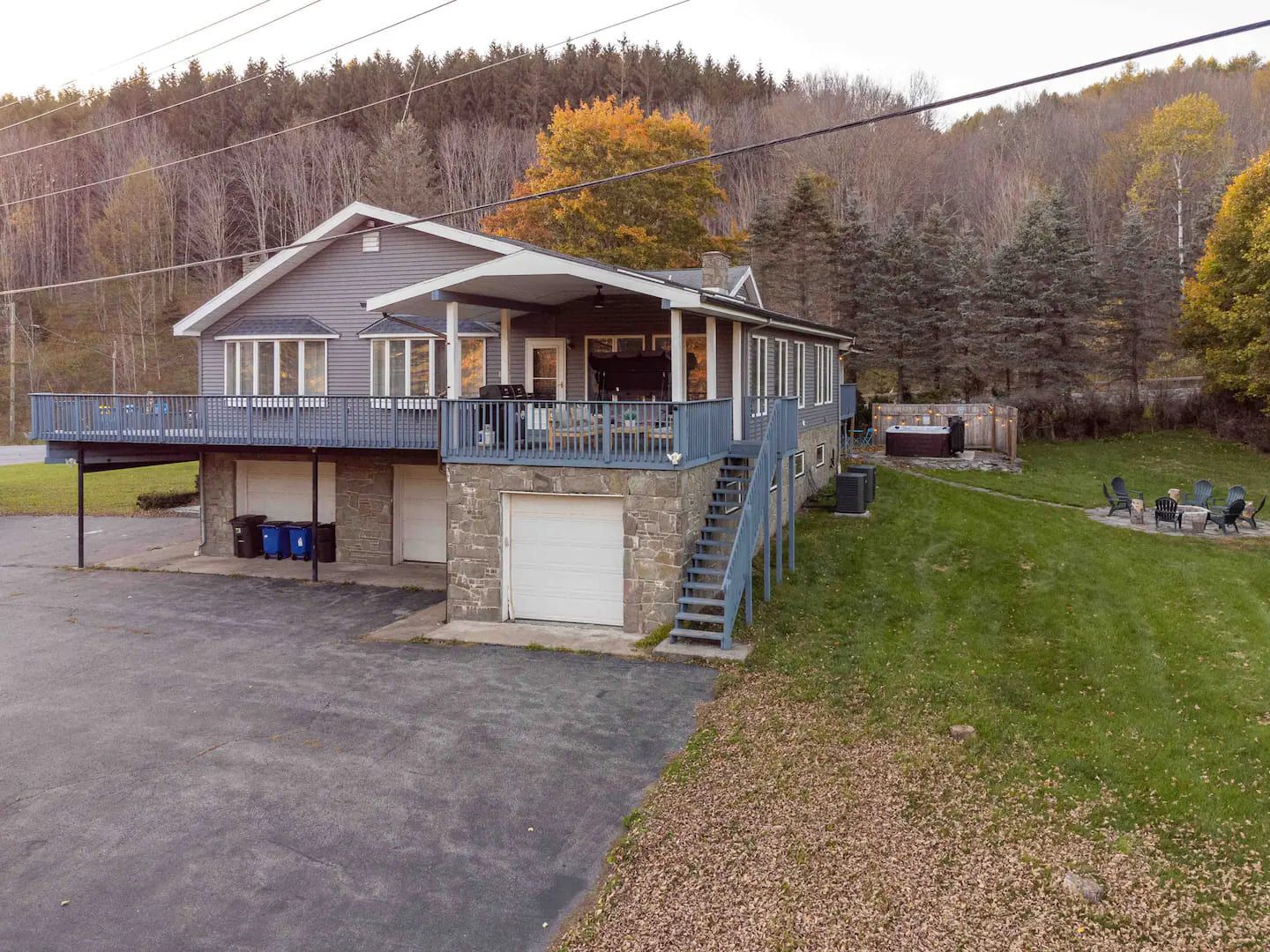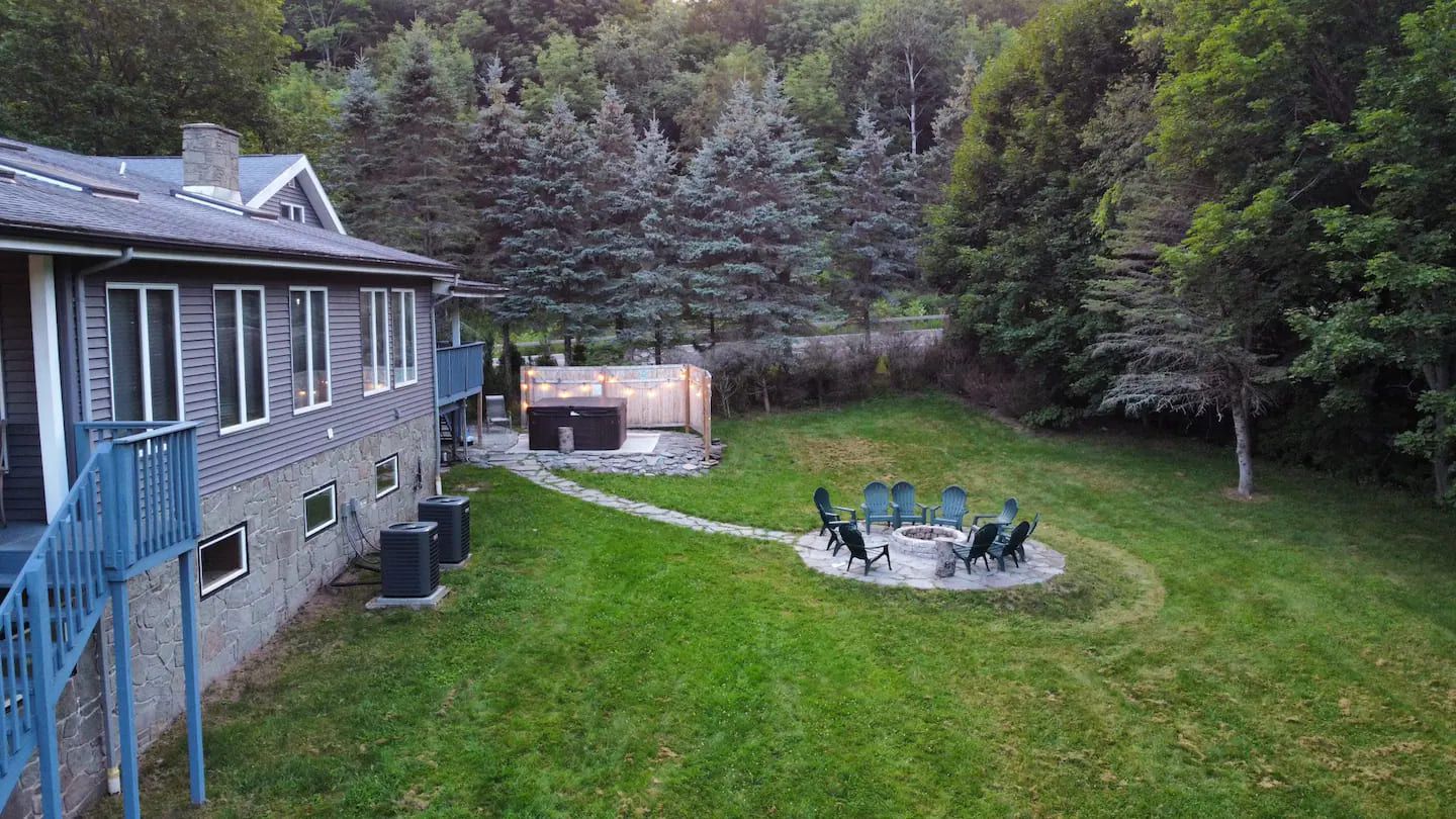 3600 SF of indoor living space, 5 acres of outdoor field surrounding with a view of gorgeous Catskills park nature reserves. Plenty of amenities to entertain all ages. A 7 seats 95 jets hot tub with built in Bluetooth speakers. Outdoor firepit with lounge chairs. 2 outdoor decks with sofa, chairs and chair swing for summer gathering.